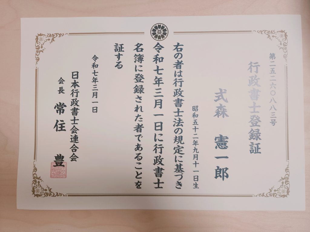 行政書士業務も請負います 2025-03-13 最終更新日時 : 2025-05-28 prorelations 昨日、行政書士登録証の授与式に出席しました。 各種契約書の作成や、建設業許可、経営審査、風俗営業許認可等も取り扱えるようになりました。 関連投稿: 関連する投稿はありません。