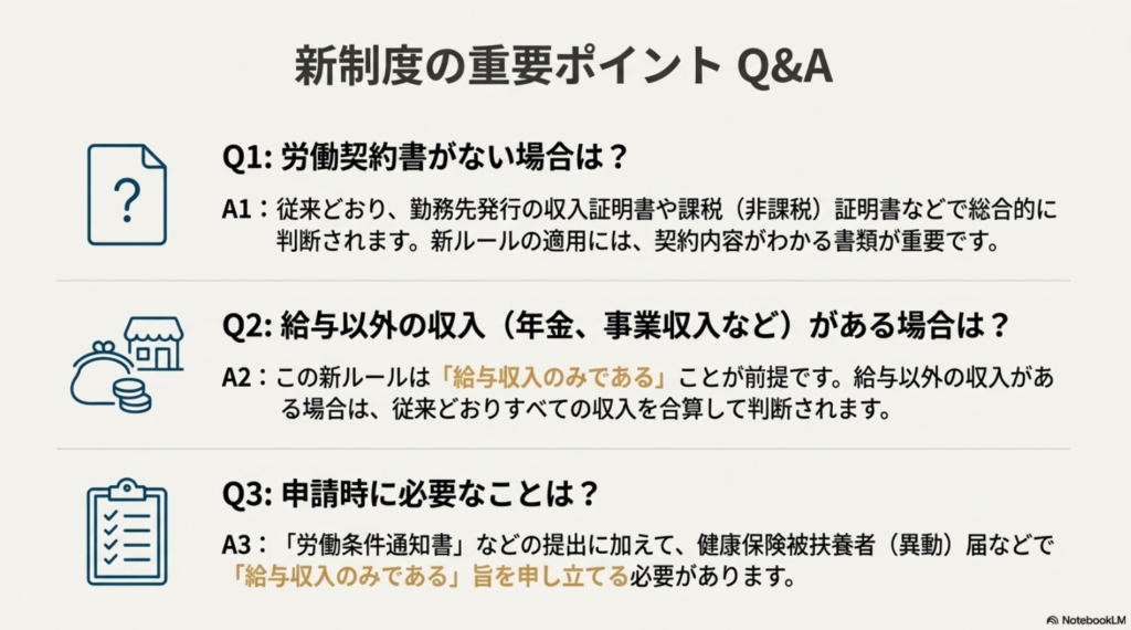 なお、副業などの事業収入や年金収入がある場合は、従来通り確定申告書や非課税証明書などを用いた判定が行われます。